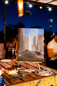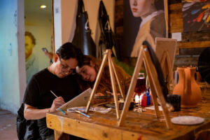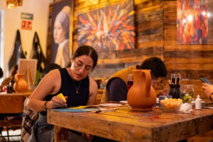 La propuesta de Casa Arda es un concepto innovador que combina arte, gastronomía y un ambiente relajado. La actividad de la noche permitió a los asistentes elegir entre pintar sobre lienzos o vinilos musicales, así como crear pequeñas esculturas con materiales diversos. En un ambiente de camaradería, los participantes dejaron fluir su imaginación, aprovechando la oportunidad de descubrir sus habilidades artísticas ocultas.