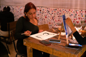 La propuesta de Casa Arda es un concepto innovador que combina arte, gastronomía y un ambiente relajado. La actividad de la noche permitió a los asistentes elegir entre pintar sobre lienzos o vinilos musicales, así como crear pequeñas esculturas con materiales diversos. En un ambiente de camaradería, los participantes dejaron fluir su imaginación, aprovechando la oportunidad de descubrir sus habilidades artísticas ocultas.