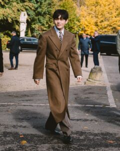 El desfile se distinguió por un ambiente íntimo y sofisticado, enmarcado bajo un enorme foulard de seda que sirvió de dosel y que, además, se convirtió en parte de la identidad del evento. La propuesta de Rider mostró un equilibrio entre la herencia de la marca y una visión renovada, combinando sastrería fluida, pantalones amplios, mezclilla con toques retro y accesorios que evocan la esencia clásica de Celine.