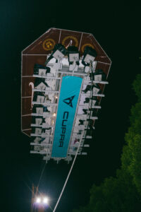 Al ser asegurados con los elegantes arneses de seguridad, el comensal no se siente en una atracción, sino en el asiento de un exclusivo cocktail aéreo. La ascensión es silenciosa, majestuosa, llevando a los 22 privilegiados a una altura deslumbrante de 45 metros. Una vez allí, el entorno se convierte en un escenario épico. La vista panorámica es incomparable, cinematográfica. Es, de lejos, la perspectiva más sublime que Puebla puede ofrecer, una verdadera joya visual que captura la esencia histórica y vibrante de la ciudad.