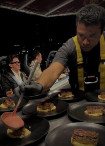 La verdadera proeza de Dinner in the Sky reside en su capacidad para maridar una experiencia tan vertiginosa con una gastronomía de clase mundial. Con los chefs oficiando en el centro de la mesa suspendida, el proceso de la alta cocina se convierte en parte del espectáculo.
