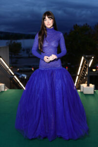 Johnson, conocida por su versatilidad en la pantalla, encendió la alfombra verde con un look que equilibró la sofisticación con la audacia. La actriz apareció con un espectacular vestido azul eléctrico de Gucci, con un diseño que presentaba transparencias en encaje y un favorecedor corte drop-waist. Su elección de vestuario se robó todas las miradas, demostrando un estilo que no teme arriesgar y que siempre resulta memorable.