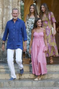 Pero seamos sinceros, todos los ojos estaban puestos en la reina Letizia. La monarca deslumbró con un look que ha sido aclamado como su mejor elección de verano hasta ahora. Su elección fue un vestido de tirantes en un vibrante color rosa de Hugo Boss, un diseño que irradia frescura y elegancia. Para complementar este look de ensueño, la reina optó por unas alpargatas planas tradicionales de Espardenyes Torres, un clásico que nunca falla. Llevaba un bolso de mano a juego con el vestido de la marca Feel Mallorca, añadiendo un toque de coordinación perfecta. Además, repitió unos preciosos pendientes con diseños de soles de Sure Jewels, que ya le habíamos visto antes, demostrando que tiene sus piezas favoritas.