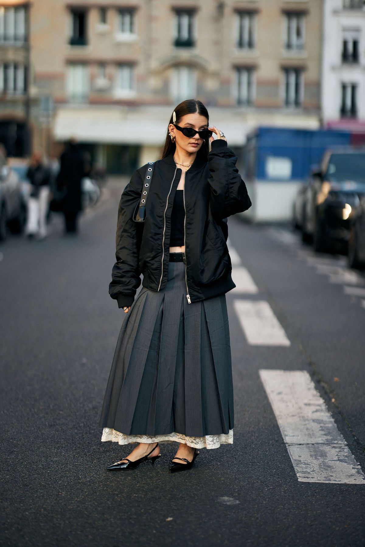 La tendencia combina comodidad y elegancia sin esfuerzo. Las faldas acampanadas se llevan con suéteres ligeros, tops de punto o blusas de lino, logrando un equilibrio entre volumen y forma. Los botines se convierten en su mejor compañero, aportando altura y un toque de carácter, mientras los accesorios de inspiración artesanal —como cinturones de cuero, bolsos tejidos y joyería dorada o de madera— completan un look que respira autenticidad.