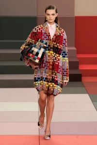 La maison apostó por reinterpretar la herencia romana con técnicas artesanales aplicadas a tejidos coreanos, elevando la conversación cultural entre Europa y Asia. Entre las piezas más destacadas se observaron abrigos de piel ligera, vestidos drapeados y bolsos Peekaboo intervenidos a mano.