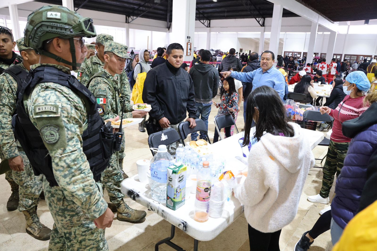Apoyo Humanitario: Las tropas federales se encargaron de patrullajes preventivos y de la distribución de miles de despensas, cobertores y colchonetas en albergues temporales, asegurando la atención médica y alimentaria a los damnificados.