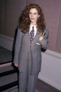 Con una chaqueta oversize y pantalones de corte masculino, Roberts transmitió frescura, seguridad y modernidad, convirtiéndose en un referente de estilo atemporal. La elección no solo sorprendió a la crítica de moda de la época, sino que consolidó la reputación de Armani como maestro de la elegancia sobria y sofisticada. A más de tres décadas, aquel look sigue siendo considerado un ícono de empoderamiento femenino en Hollywood.