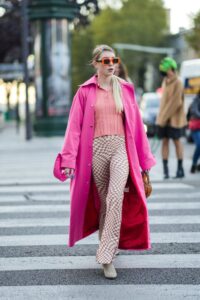 En la moda, la estética retro se refleja en el regreso de prendas como los pantalones acampanados, chaquetas oversized, tenis clásicos, estampados coloridos y peinados inspirados en décadas anteriores. Marcas y diseñadores reinventan estas tendencias para adaptarlas a los gustos actuales, combinando lo antiguo con lo moderno.