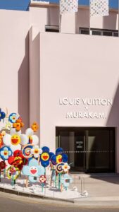 La presentación tuvo lugar en el marco de Art Basel Paris, en el Grand Palais, donde Murakami instaló un entorno inmersivo con flores de peluche y un pulpo luminoso de 7.5 metros, marcando una convergencia entre arte contemporáneo y moda de élite.