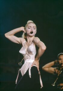 El punto de inflexión fue la gira “Blond Ambition Tour” en 1990. Para esta icónica serie de conciertos, Madonna colaboró con el diseñador Jean Paul Gaultier, dando vida a la pieza que se convertiría en su sello: el corsé con conos de satén. Este diseño no era solo una prenda; era una declaración de independencia sexual y una subversión de las normas de vestimenta femenina.