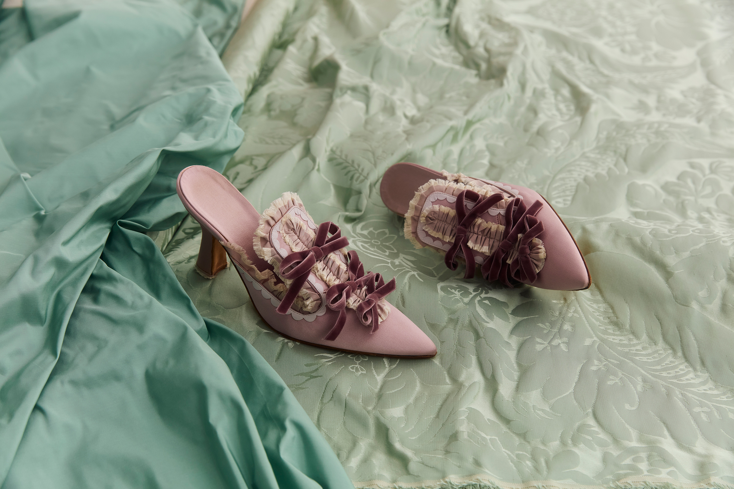 En 2006, la directora pidió a Blahnik que diseñara calzado que capturara el espíritu del Versalles del siglo XVIII. El resultado fue una colección de 25 pares de zapatos que hacían eco de las siluetas de la época, pero reimaginadas para el cine. Con tacones en tonos de pistacho, azul polvo, lila y rosa rubor, cada par fue confeccionado en seda y terminado con adornos artesanales como lazos, cintas y hebillas antiguas. Estos zapatos contribuyeron a la estética caprichosa y decadente que definió el retrato estilizado de la reina, especialmente en la icónica escena de “I Want Candy”.
