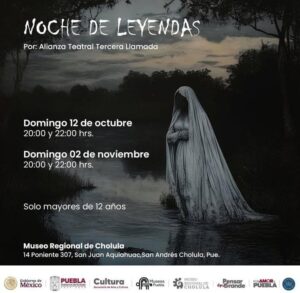 Organizada por el Gobierno del Estado de Puebla y la Secretaría de Cultura, esta actividad forma parte de la cartelera cultural de la temporada de Día de Muertos. Con ‘Noche de Leyendas’, se busca rescatar la riqueza de las narraciones populares y fortalecer el vínculo entre el arte teatral y el patrimonio histórico de México.