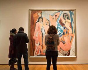 Entre sus obras más emblemáticas se encuentra Les Demoiselles d’Avignon una pintura que rompió con la perspectiva tradicional y abrió el camino al cubismo. Con figuras fragmentadas y rostros inspirados en máscaras africanas, esta obra provocó controversia en su época y se convirtió en un punto de inflexión en la historia del arte moderno. En ella, Picasso desafió las reglas estéticas establecidas y propuso una nueva forma de mirar el cuerpo humano.