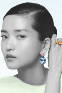 Las piezas destacan por la combinación de piedras preciosas como la aguamarina y el peridoto, cuyos tonos evocan frescura y vitalidad. Prada propone una lectura distinta de la joyería: un juego de contrastes donde la geometría se encuentra con la fluidez, y el lujo se experimenta como una forma de autoexpresión.
