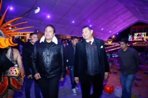 Más de cinco mil asistentes se reunieron para presenciar este espectáculo único, encabezado por el gobernador Alejandro Armenta, quien destacó que en Puebla “se fortalece la paz y la armonía” a través de la cultura y las tradiciones. El mandatario participó en la tradicional caminata de antorchas, que recorrió las calles principales entre danzas, cantos y rituales que simbolizan el tránsito de las almas hacia el Mictlán.