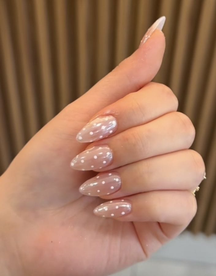 ​El diseño de lunares se confirma como un estilo dinámico, capaz de fusionarse con el french manicure para un toque sofisticado (añadiendo puntos en lugar de solo en las puntas) o de suavizarse con un degradado que va del rosa fuerte a un rosa bebé suave.
