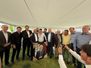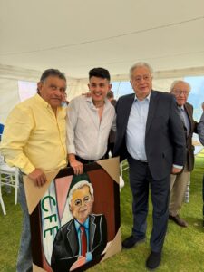 Un momento particularmente significativo fue el protagonizado por Carlos Meza Torres (Charly Meza). Representando con distinción a la nueva generación y con el tacto que lo caracteriza, Charly obsequió al festejado una pieza de alto valor simbólico: un retrato al óleo de Don Manuel enmarcado con las siglas de la CFE, un gesto que fusiona el arte con la trayectoria institucional del homenajeado.