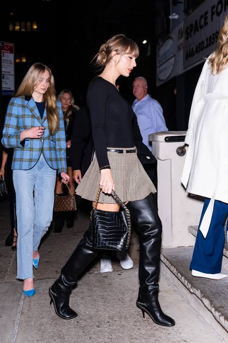 El Abrigo Perfecto: En las estaciones frías, Taylor es la embajadora de los abrigos llamativos, desde los elegantes abrigos de cuadros o tartán, hasta los trench coats de corte impecable, demostrando que la pieza exterior puede ser la protagonista.