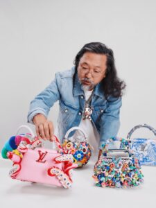 La edición consta de once creaciones exclusivas, cada una interpretando el universo visual distintivo de Murakami: colores vibrantes, personajes lúdicos como Mr. DOB, pandas, flores sonrientes y motivos inspirados en la cultura kawaii japonesa. Entre los modelos destacados están el Capucines BB Golden Garden con marquetería floral y piel cubierta de pan de oro, la Capucines Mini Mushroom con más de 100 setas de resina pulidas a mano, y la Capucines Mini Tentacle, que reimagina un pulpo colorido fusionando técnica artesanal y fantasía visual.