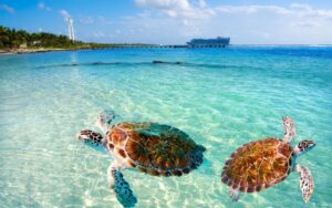 Bienvenida a la tierra mágica de las tortugas marinas. El nombre Akumal significa “lugar de tortugas” en maya, y hace honor a su título. Sus aguas cristalinas y protegidas ofrecen una oportunidad única de practicar snorkel y nadar junto a estas nobles y fascinantes criaturas. Es una experiencia que te conecta de inmediato con la vida marina de una manera íntima y respetuosa.