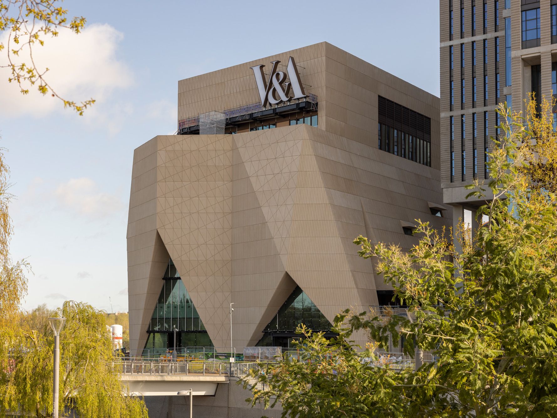 El edificio, diseñado por el reconocido estudio O’Donnell + Tuomey, destaca por su arquitectura contemporánea y su enfoque accesible e incluyente. A diferencia del histórico Victoria & Albert Museum de South Kensington, esta sede se concibe como un laboratorio cultural vivo: más cercano a las comunidades locales, más interactivo y con una narrativa que mira hacia el futuro. La estructura de cinco pisos combina amplios espacios de exhibición con áreas sociales que invitan a la convivencia y al diálogo creativo.